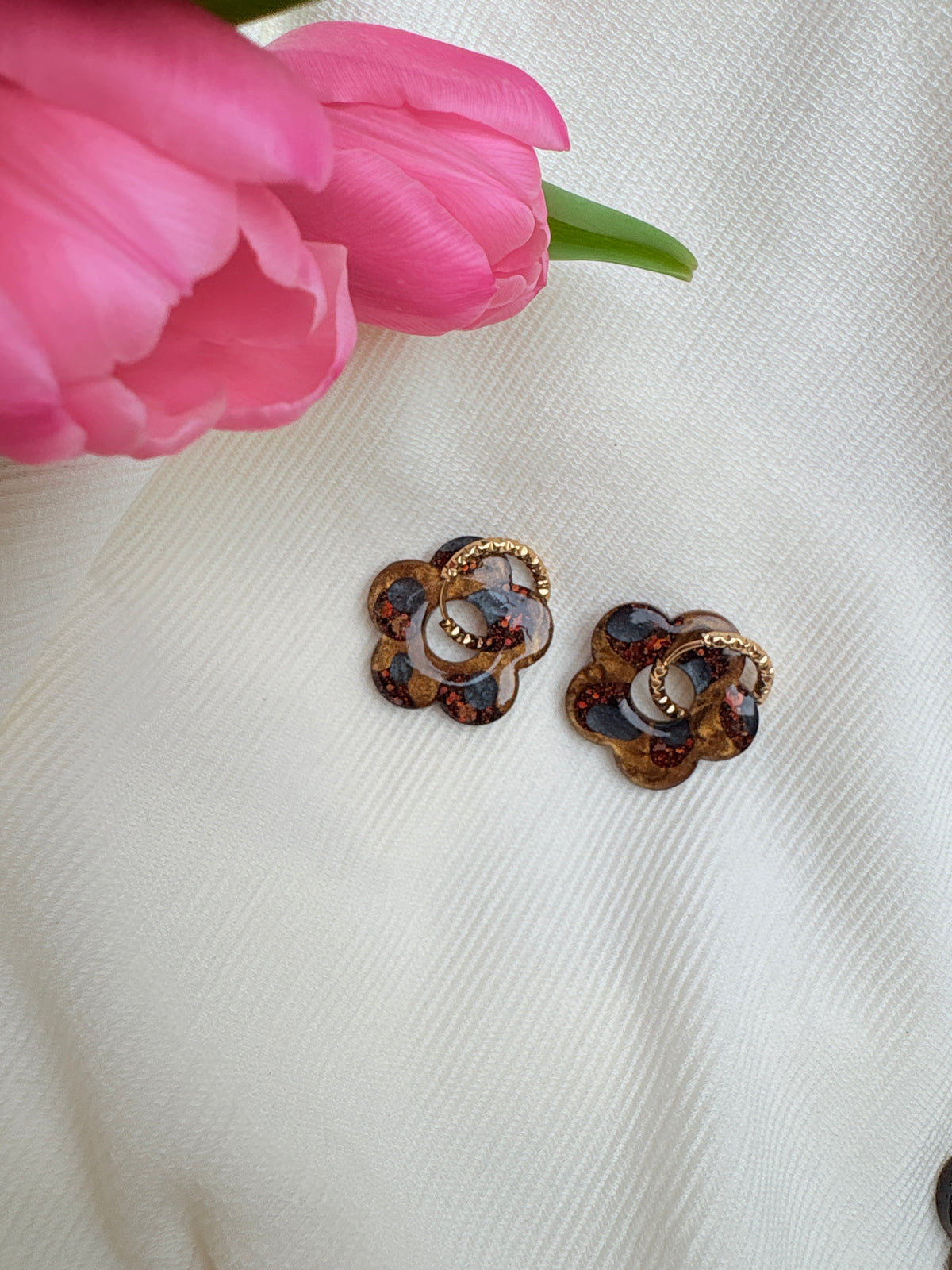 Créées à la main, ces pampilles Fleurs XL léopard crème sont parmi nos incontournables. Portez-les pour affirmer votre style avec élégance et singularité.